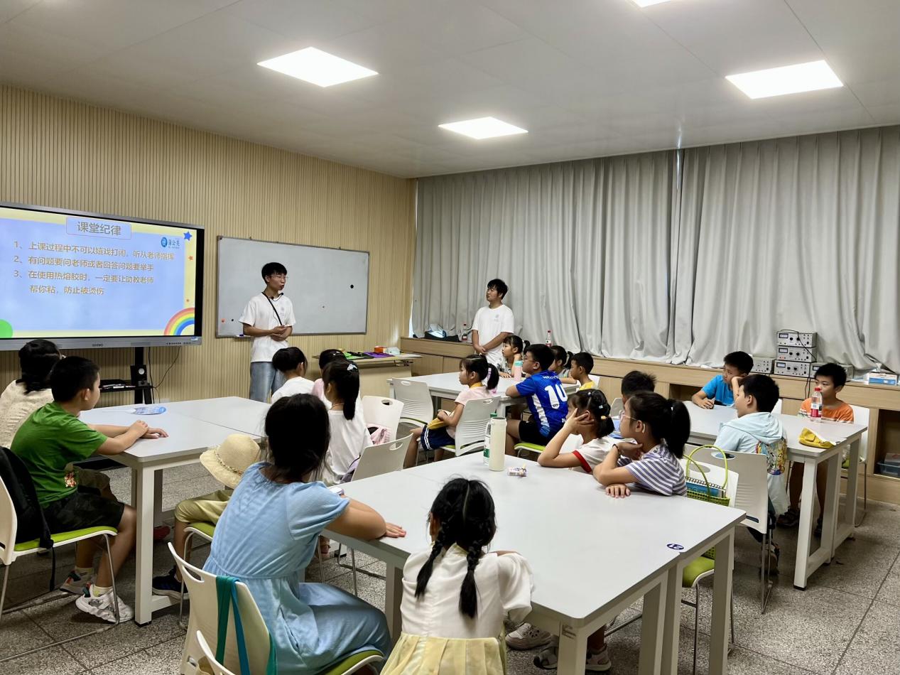 课堂中,主讲人员以高温天气中风扇的作用为切入点,引导学生思考转动原理。在动手之前,主讲老师讲解了风扇的核心结构:电池提供能量、导线连接成回路、干簧管开关控制电流通断等。随后,组织参营学生通过识别电路元件,初步认识电路构成与磁的作用机制。