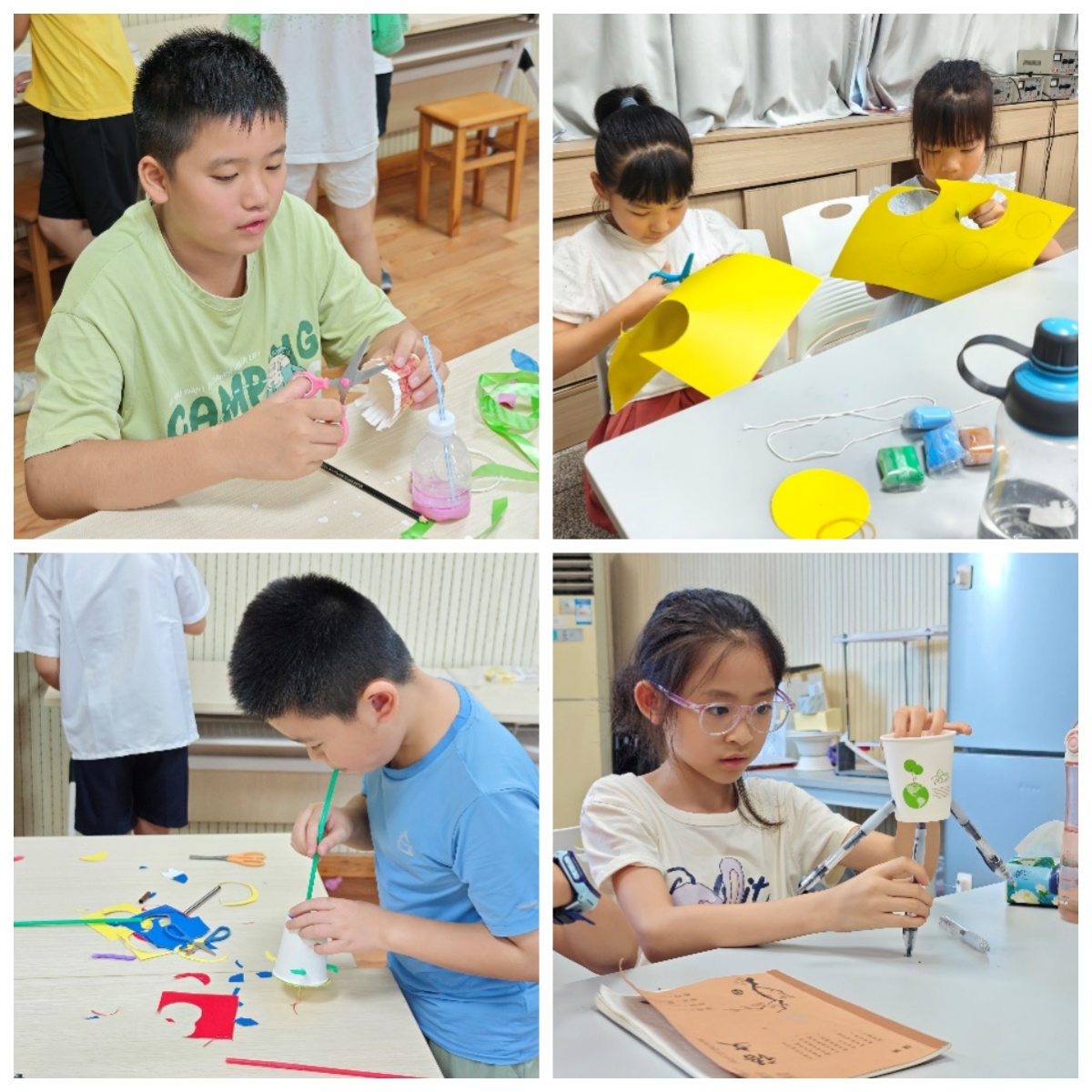 夏令营以“物理源自于生活”为理念,引导学生们从日常现象出发理解科学。课程设计由浅入深:从“自制铜鼓”的声学振动实验,让学生亲手制作并领悟发声原理;到“电磁开关纸风扇”的电路组装挑战,初步认识电路构成与搭建;通过“空气动力陀螺”探索流体力学,直观感受力的相互作用;再到“自制悠悠球”实践,初步理解能量转化关系。期间还特意增设了亲子课堂,让家长与学生携手制作“掌心相机”,共同学习光的直线传播原理。