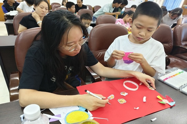 动手环节中,孩子们在助教老师的帮助下动手制作小风扇。他们按照步骤裁纸、组装电路,当扇叶成功转动时,现场充满惊喜和成就感。遇到困难时,老师及时指导,确保每位孩子都能完成制作。