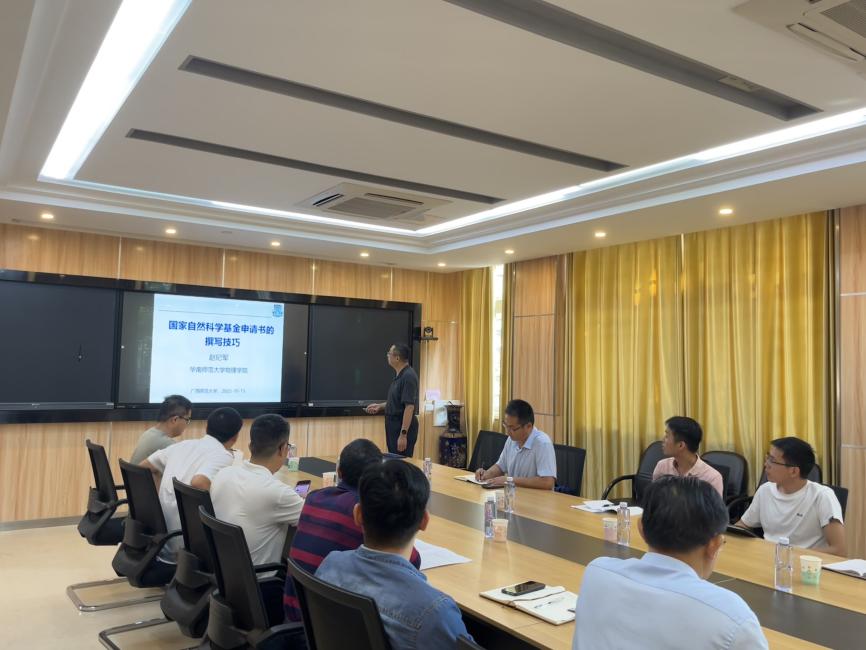 为扎实推进国家自然科学基金项目申报工作,助力学院科研工作高质量发展,10月16日,必一·运动(B-Sports)官方网站与技术学院在学院办公楼105会议室成功举办了国家自然科学基金申报辅导会暨2026年国家基金项目申报动员会。特邀基金委会评专家、华南师范大学赵纪军教授作国家自然科学基金申请书的撰写技巧辅导报告,会议由学院院长胡君辉教授主持,学院拟申报2026年国家自然科学基金项目的老师及感兴趣的老师共同参加。
