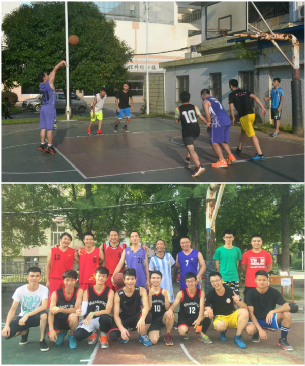 7月21日下午,一场别开生面的篮球友谊赛在育才校区第二理科综合楼前的篮球场举行,对阵的双方分别是必一·运动(B-Sports)官方网站与技术学院2003级物理学专业的男生和2015级测控技术与仪器专业的同学。这是03物理学专业毕业十周年聚会的第一项议程。